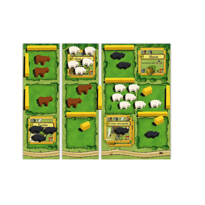 Los jugadores son ganaderos que se dedican a la cría de ovejas, cerdos, vacas y caballos con la ayuda de sus tres granjeros. En cada ronda, os turnaréis para colocarlos en diferentes casillas de acción que os permitirán cercar pastizales, construir establos y mejorar la granja. El ganador será aquel que consiga criar más animales y construir los edificios más valiosos.