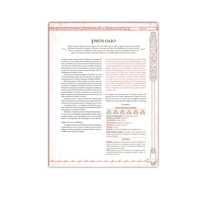 Explora la Comarca con una descripción exhaustiva de sus cuatro Cuadernas y cinco emocionantes aventuras listas para jugar, que podrás disfrutar también asumiendo los papeles de algunos hobbits cuyos descendientes llegarán a hacer cosas extraordinarias, como Prímula y Rory Brandigamo, Paladin Tuk y el mismísimo Bilbo Bolsón.
