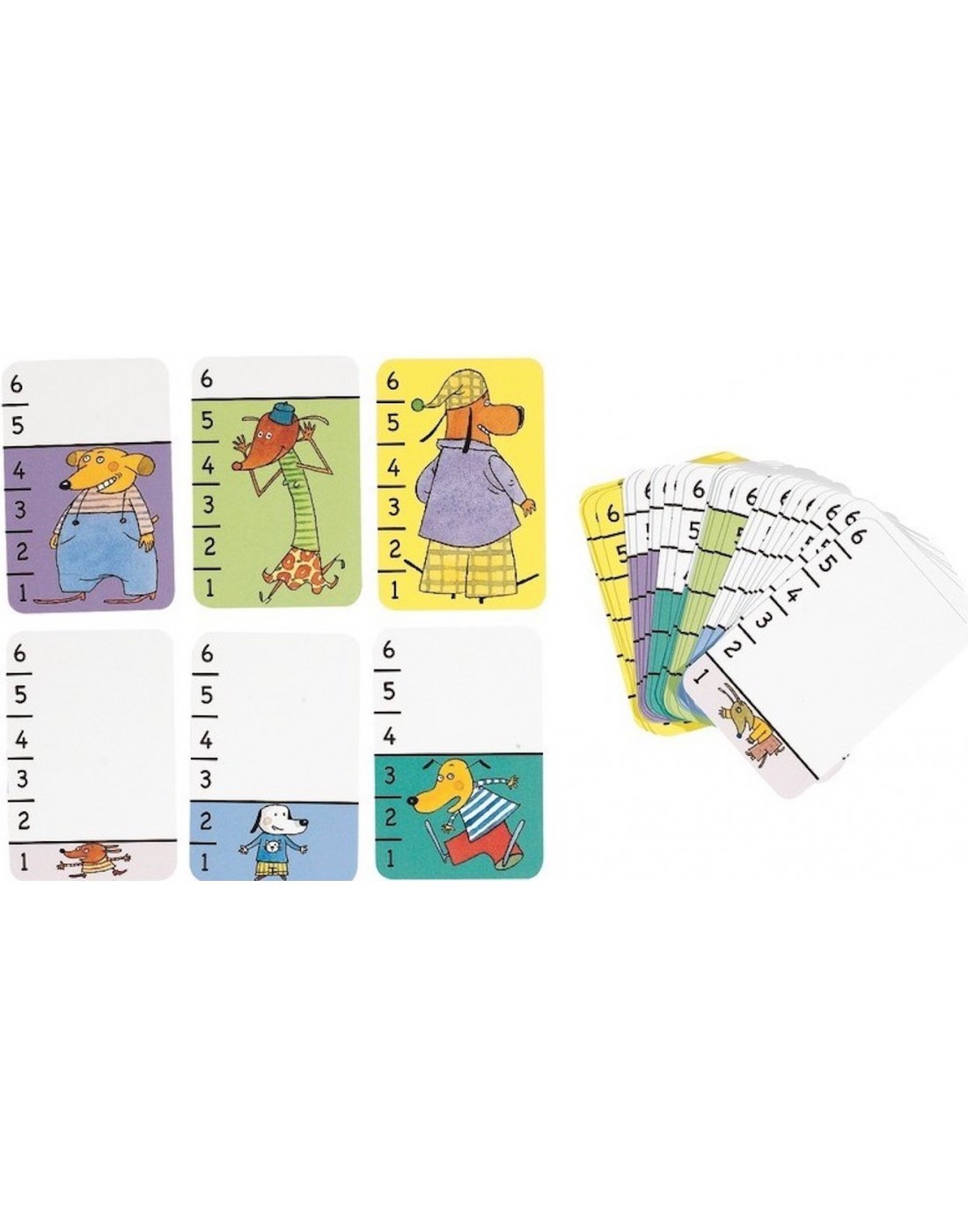 Empezamos, repartiendo todas las cartas y las ponemos boca abajo delante nuestro en un montón. A la de tres … destapamos la primera carta de nuestro montón. El que tenga el número más alto o el perro más alto se queda la suya y la de su contrincante.