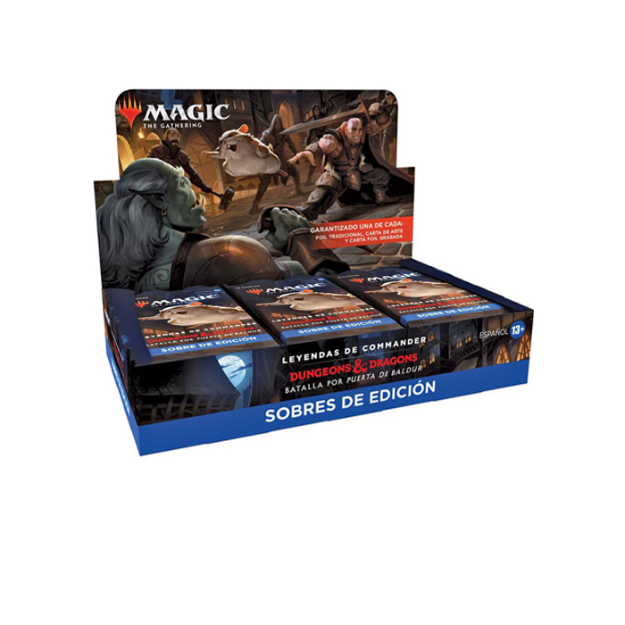 Caja de 18 sobres de edición de Leyendas de Commander: Batalla por Puerta de Baldur. Magic the Gathering.