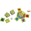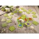 Para ello, tiramos los dados y movemos la figura de Bellaflor por los campos tantas casillas como indique el dado. Si al lado del campo donde paramos hay una o más cartas de flores , podemos tomarlas e irlas apilando en un montón.