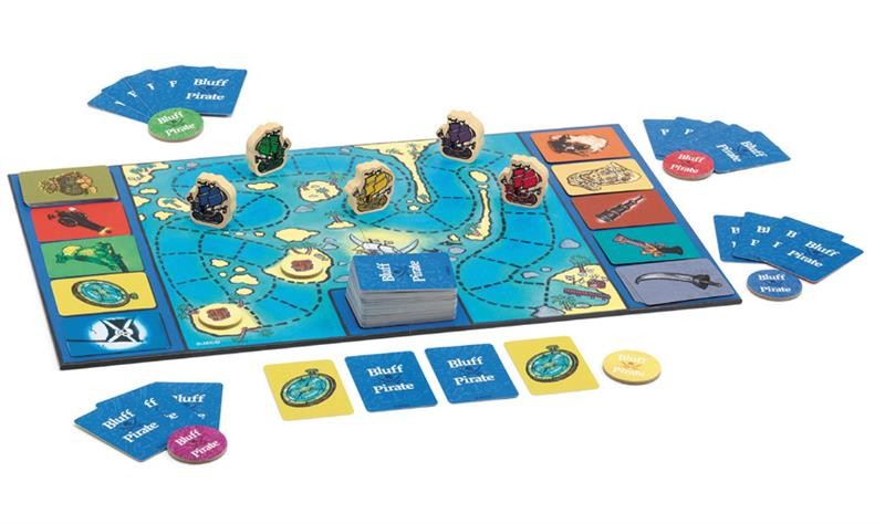En Bluff Pirate, acaba de empezar la carrera por el tesoro de la Isla Secreta. Para hacer avanzar tu barco, tendrás que mostrar en la mesa series de cartas idénticas. A riesgo de dar ventaja a tus oponentes, puedes lanzar un farol que ellos deberán descubrir.