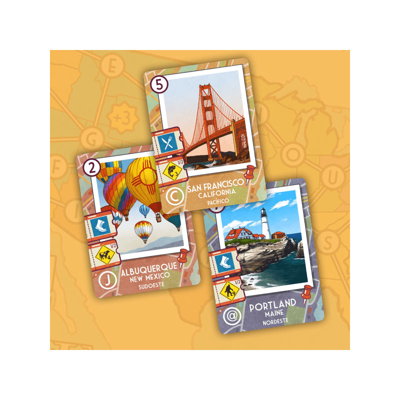 Selecciona y pasa las cartas, ¡y marca en tu mapa por dónde has estado y qué has visto!. ¿Alguien será capaz de conectar las costas Este y Oeste?.