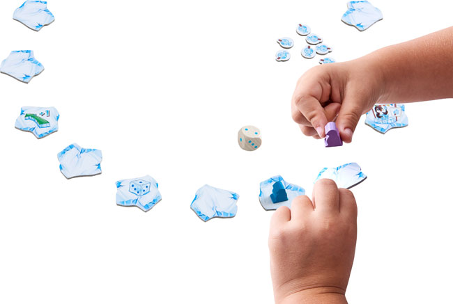 Si mamá pingüino reparte pinchos de pescado, los pequeños pingüinos saltan de un témpano a otro a toda velocidad. Aquel que pase por mamá pingüino, recibe un pincho para obtener fuerzas
