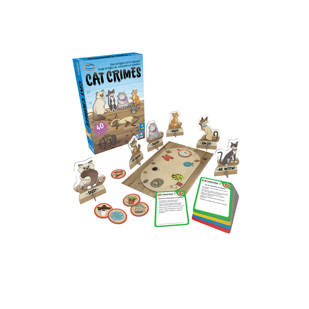 Un ovillo de lana deshecho y un pajarito desaparecido… ¿Cuál de los seis amigos de cuatro patas es el responsable de este crimen? Con un poco de análisis y vuestras dotes de investigación, podréis utilizar las huellas, la disposición del juego y la situación de los demás elementos para descubrir dónde se encontraba exactamente cada gato en el momento del crimen.