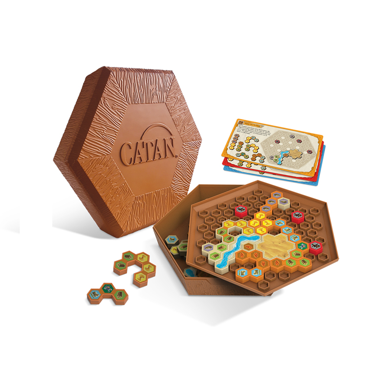 A través de 40 rompecabezas, distribuidos en 4 niveles distintos de dificultad, Catan Puzle ofrece horas de diversión y todo un reto para las mentes más exigentes. Las emblemáticas losetas hexagonales encajan en un tablero tridimensional que a la vez sirve como caja del juego, cosa que nos facilitará llevarlo como complemento lúdico ideal si nos vamos de viaje.