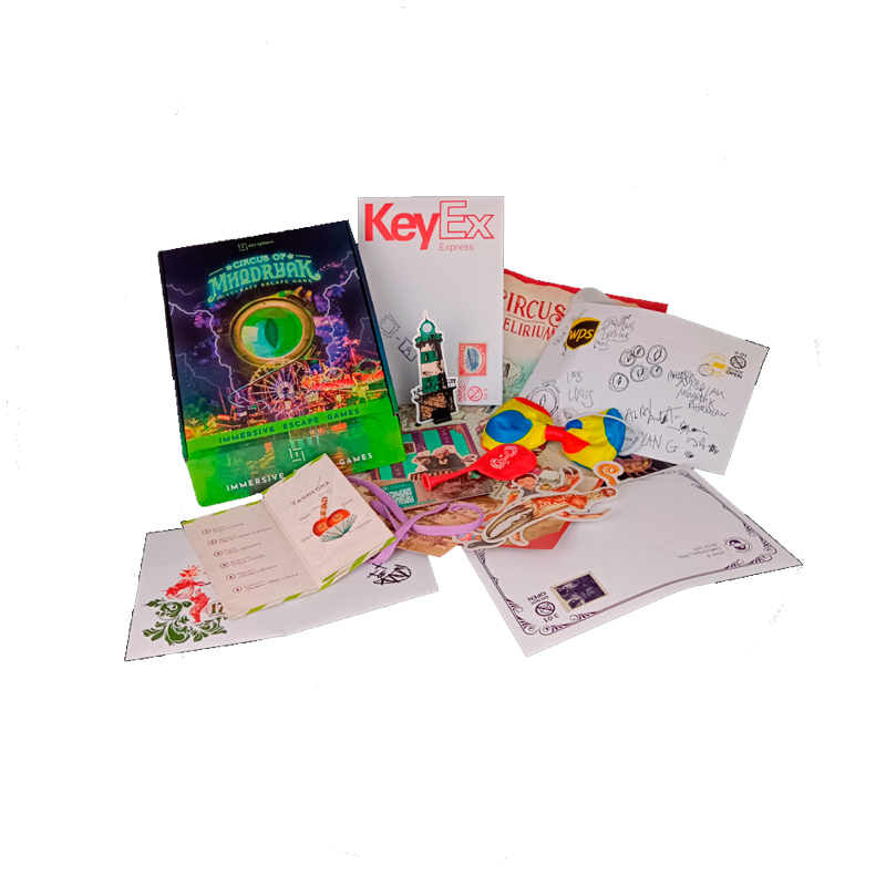 Una caja llena de misterios llegará a tus manos. Con materiales, códigos y pistas escondidos en su interior, tendrás que usar tu ingenio y combinar los objetos para resolver el misterio de este terrorífico circo.