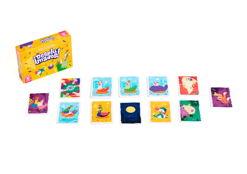 ¡Desplumados! es un juego de corte familiar, rápido, sencillo y con mucha interacción. El objetivo es ser la primera persona en conseguir 4 o 5 gallinas del mismo color, pero sin perder de vista a tus rivales, pues van a intentar fastidiarte. Además, el azar en el robo de cartas nos permite que cada partida sea diferente a la anterior.