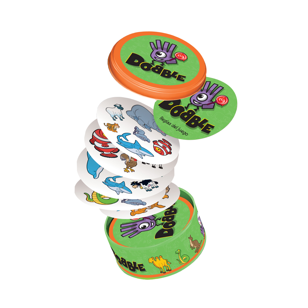 Dobble Kids contiene 30 cartas, 30 animales y un animal idéntico entre cada dos carta del juego. Para ganar, encuéntralo antes que tus amigos.