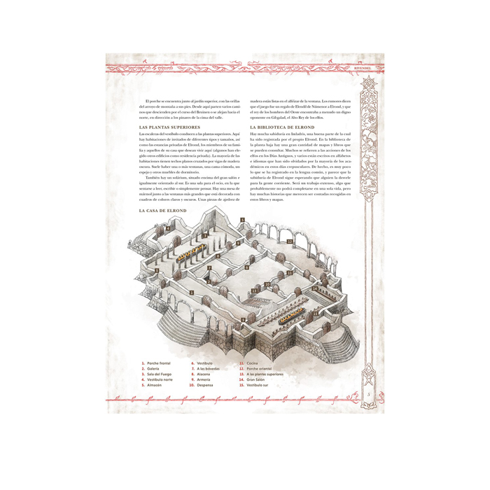 El Compendio de Rivendel contiene información sobre la Última Morada, incluyendo un mapa del valle y un plano de la propia casa. Se incluyen algunos de los habitantes de Rivendel, entre los que se encuentra Elrond, que puede utilizarse como nuevo mecenas. Por último, también se ofrecen nuevas reglas para la creación de héroes de los altos elfos.