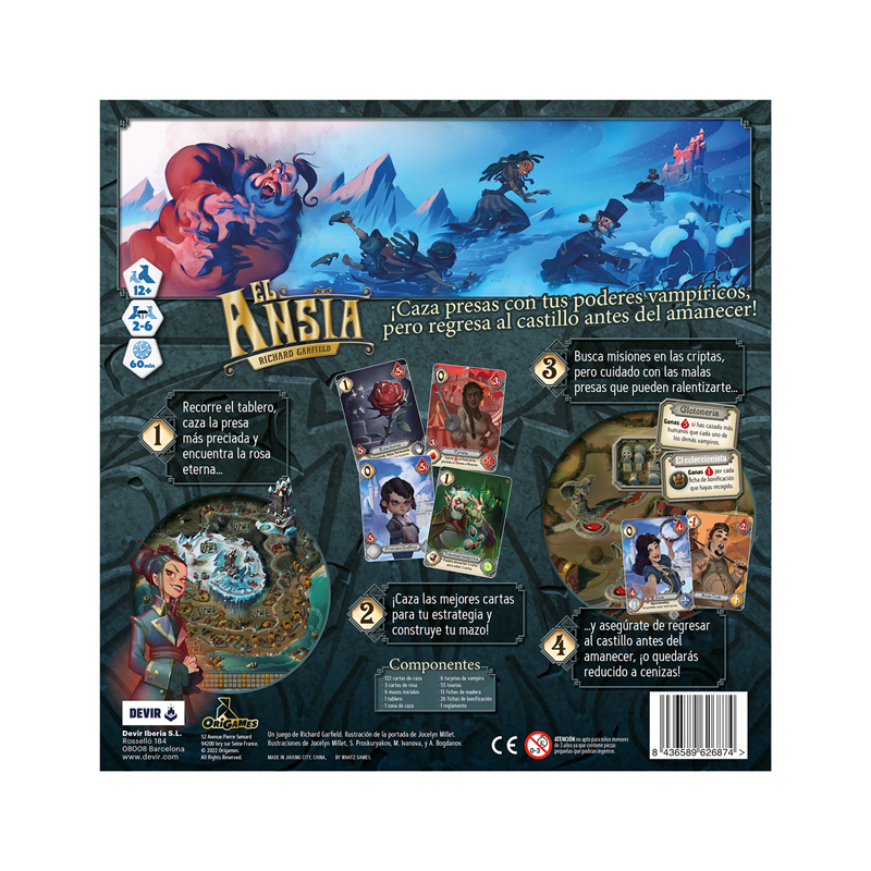 El ansia nos reta a conseguir el máximo número de puntos de victoria cazando humanos, llevando a cabo misiones secretas, consiguiendo el favor de familiares, aprendiendo nuevas habilidades o recolectando la rosa más bella del laberinto. Todo ello a lo largo de 15 turnos y con la condición de regresar al castillo antes que se haga de día, pues tras las primeras luces del alba los vampiros mueren convertidos en ceniza.