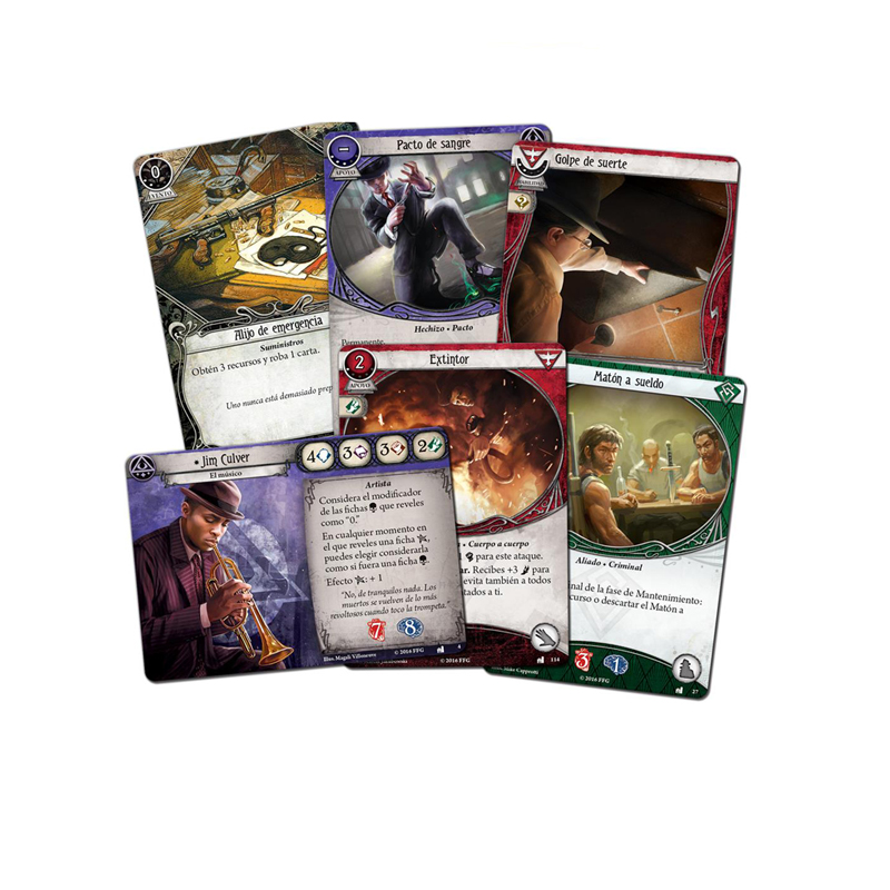 Esta expansión presenta 5 investigadores y contiene todas las cartas de Jugador y opciones de personalización que aparecieron originalmente en el ciclo El legado de Dunwich. Aniquila abominaciones como Zoey Samaras, la chef. Descubre una buena historia como Rex Murphy, el reportero. Emplea tu ingenio y tu dinero para resolver cualquier problema como Jenny Barnes, la diletante. Habla con los muertos y realiza ritos macabros como Jim Culver, el músico. Y por último ve en busca de problemas como Pete “Cubo de Basura”, el vagabundo, junto con su fiel sabueso Duke.