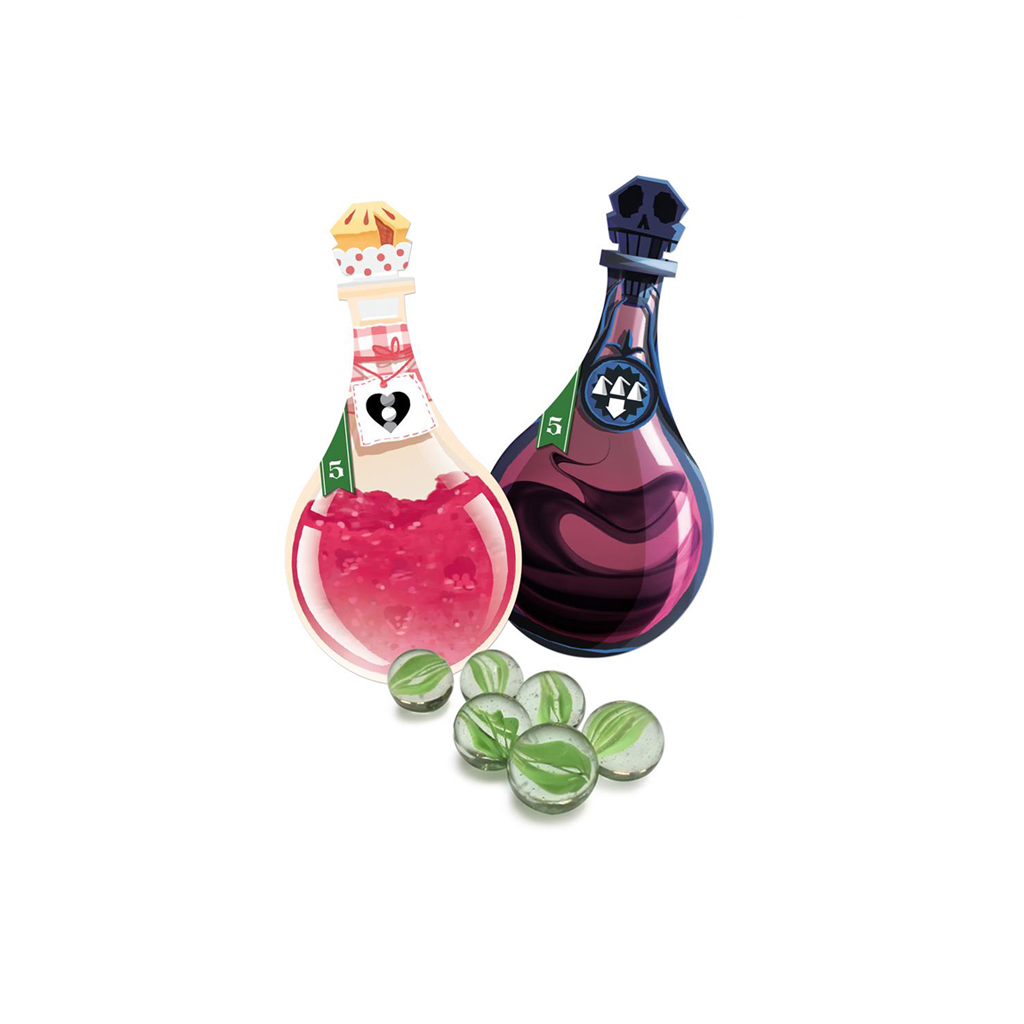 Potion Explosion: El Sexto Estudiante incluye un modo de juego para 5 o 6 jugadores. En ese modo de juego utilizarás 2 Dispensadores: cogerás canicas de un Dispensador y las devolverás en el otro. El papel de cada Dispensador se irá intercambiando durante la partida. ¡Planifica con antelación tu estrategia!