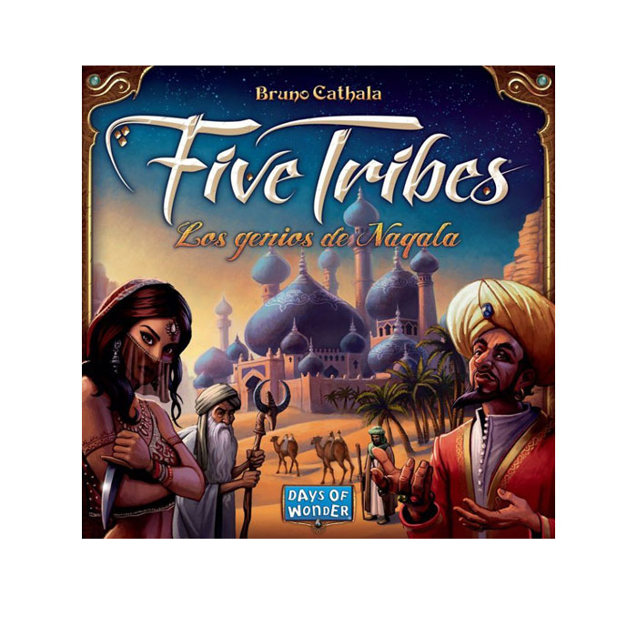 En Five Tribes-Los genios de Naqala, en un giro único en el género «»»»»»»»»»»»»»»»colocación de trabajadores»»»»»»»»»»»»»»»», el juego comienza con los meeples ya colocados, y los jugadores deben maniobrarlos inteligentemente sobre las aldeas, mercados, oasis y lugares sagrados que componen Naqala. Cómo, cuándo y dónde desplazas a estas Cinco Tribus de Asesinos, Ancianos, Constructores, Comerciantes y Visires determina tu victoria o tu fracaso.