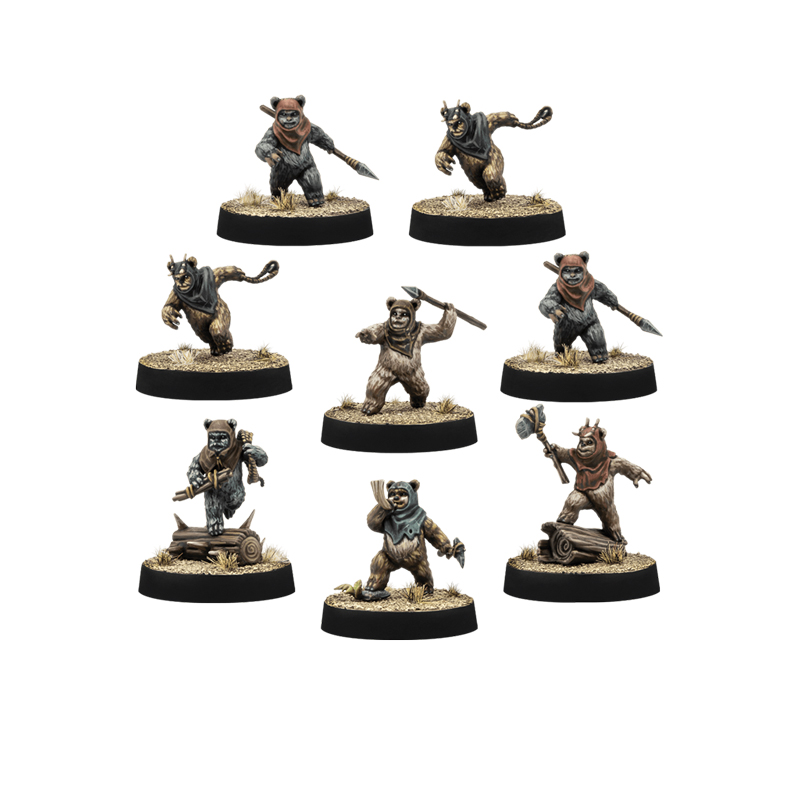 Esta expansión de unidad para Star Wars: Legion contiene 8 miniaturas de Guerreros Ewoks, además de nuevas cartas de Unidad y Mejora.