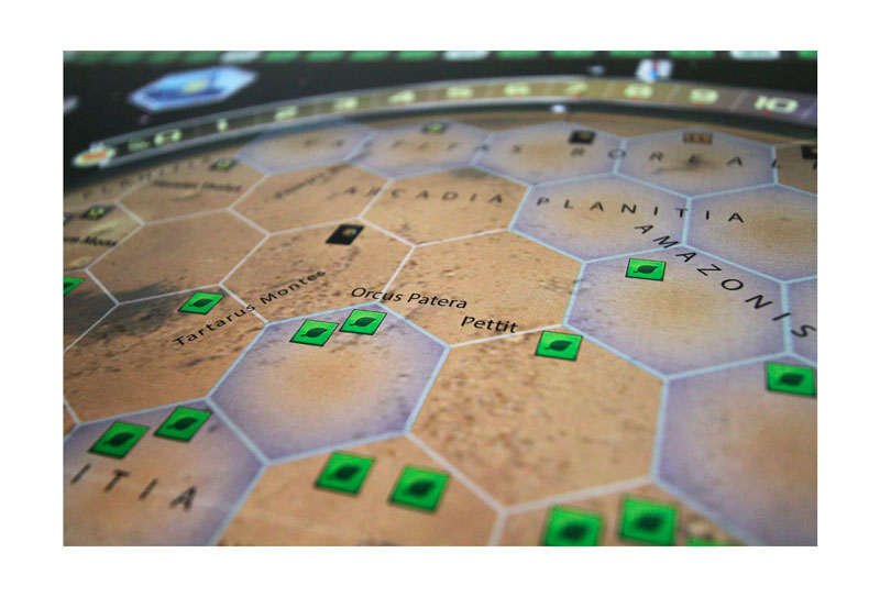 El mapa de Hellas muestra el polo sur así como el gran mar de Hellas hasta el ecuador. El de Elysium contiene la región al oeste del Tharsis, desde el Monte Olimpo, la montaña mas alta del sistema solar, hasta el monte Elysium. ¡Coloca tres losetas en el polo sur para convertirte en un explorador polar en Hellas, o compite para lograr ser el dueño de los océanos de Elysium!