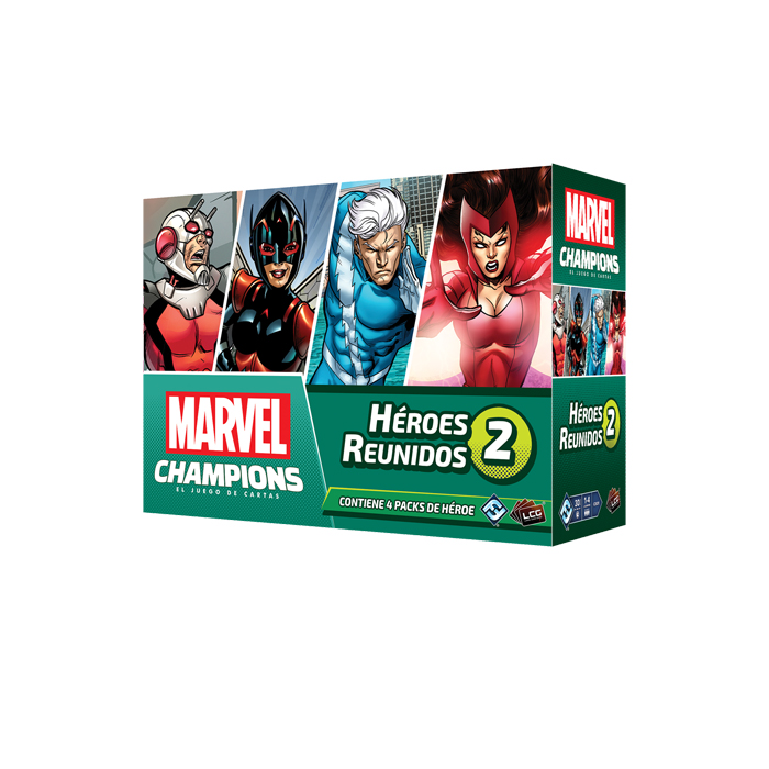 Esta segunda colección, Héroes reunidos 2, reúne los cuatro packs de Héroe de la segunda oleada de Marvel Champions: Hombre Hormiga, Avispa, Mercurio y Bruja Escarlata, y los combina en una sola caja. En esta colección se puede encontrar todo el contenido original de cada uno de esos packs, incluidas las cartas adicionales para crear mazos. Si te perdiste uno o más Héroes de la segunda oleada, ¡esta es la oportunidad ideal para completar tu colección!