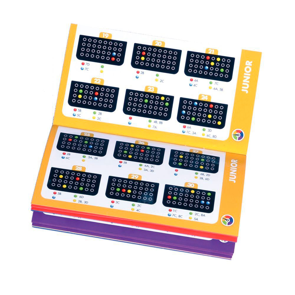 - Elige uno de los 120 desafíos y coloca las clavijas de inicio como se indica.