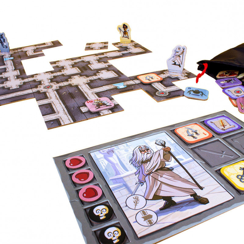 En Karak, cada jugador conducirá uno de los seis personajes diferentes dentro del laberinto de Karak. Pieza a pieza irán descubriendo el aspecto del laberinto – que será diferente en cada partida.