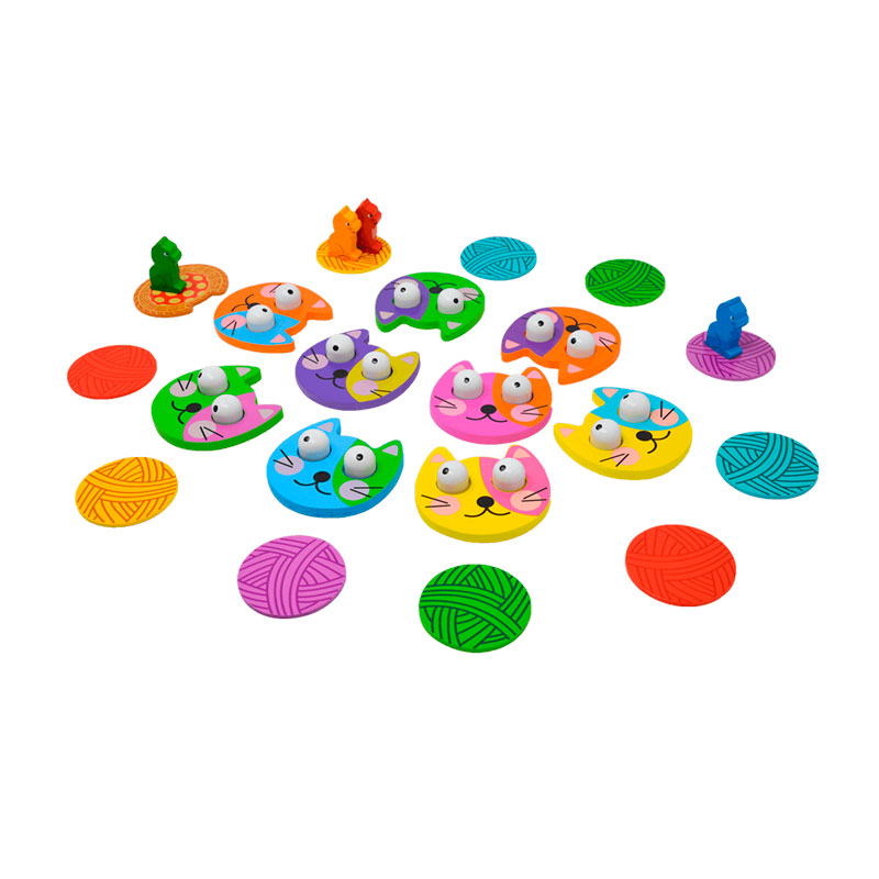 Si el ojo tiene un gatito impreso, habremos sido atrapados. No podremos seguir avanzando y será el turno del siguiente jugador. En cambio, si el ojo está en blanco, la mamá gata no nos ve y podremos saltar al siguiente ovillo de lana. De esta forma, y siempre que no nos pillen, podremos seguir jugando y avanzando hasta la meta.
