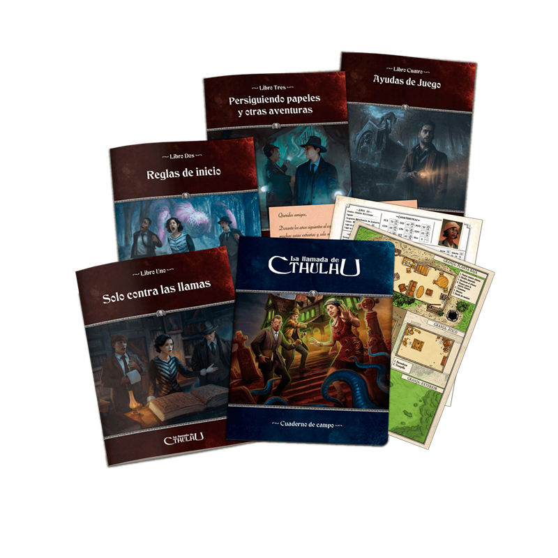 • Libro Uno: Introducción y Solo contra las llamas. Una aventura introductoria en solitario que te enseña lo básico para jugar a La llamada de Cthulhu mientras resuelves un misterio.