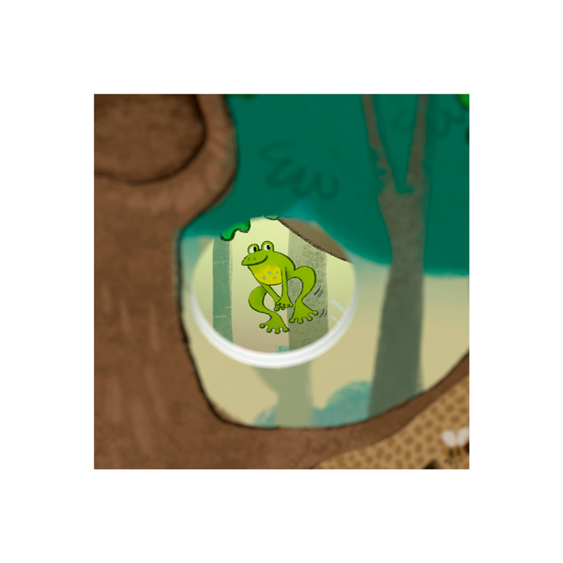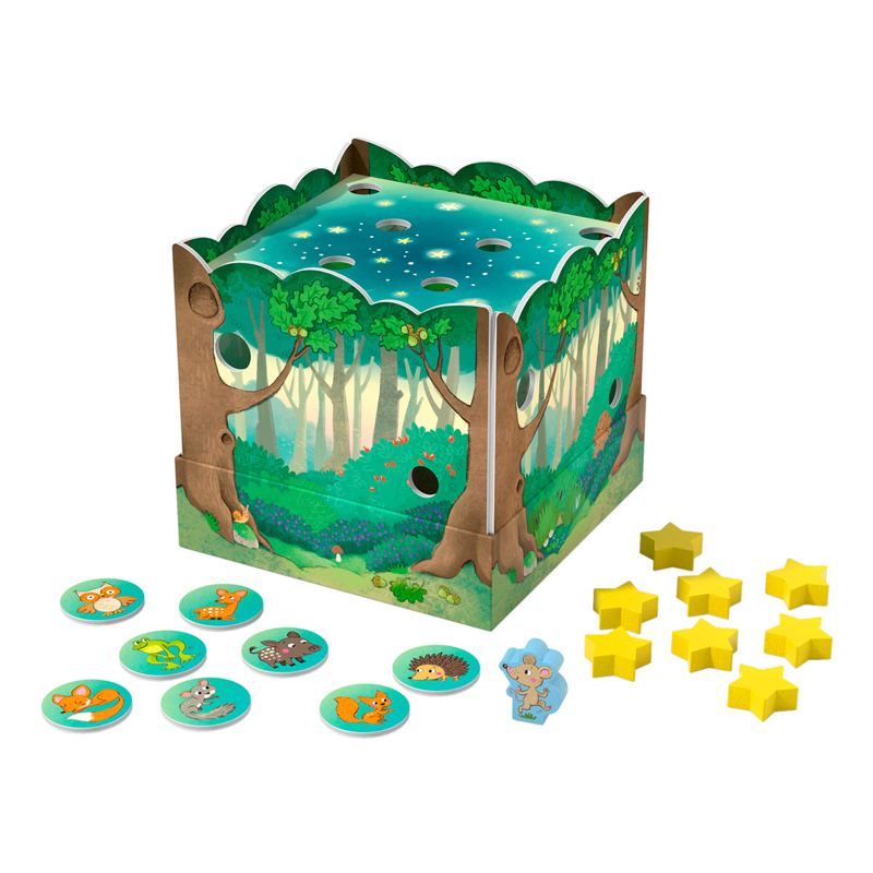 Con dos juegos diferentes, los niños y niñas aprenderán a reconocer y nombrar los animales, las plantas y todo lo que sucede en el bosque. Quien consiga acordarse, además, de dónde se esconden los habitantes del bosque, ayudará a Rita Ratona a encontrar a sus amigos.