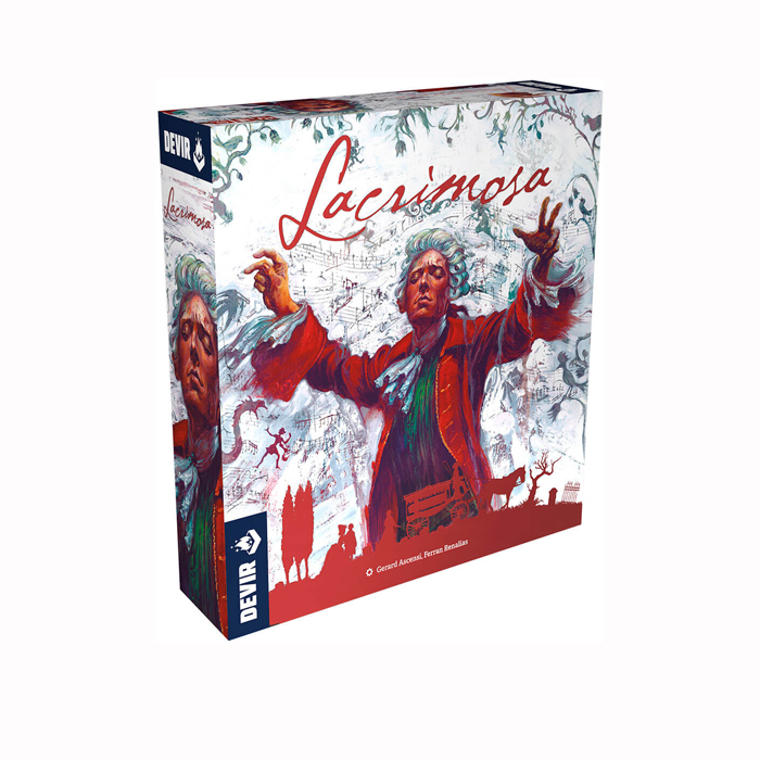 Lacrimosa es un juego que nos transporta a las cortes europeas del siglo XVIII siguiendo la obra del compositor Wolfgang Amadeus Mozart. Diseñado por Gerard Ascensi y Ferran Renalias e ilustrado por Jared Blando, Enrique Corominas y David Esbrí. Como mecenas del genio austríaco, deseáis ser recordados como su mayor benefactor y pasar a la historia junto a él. Para ello, deberéis acabar de financiar el Réquiem que dejó inconcluso antes de su muerte y demostrar que a lo largo de su vida fuisteis sus más fieles valedores.