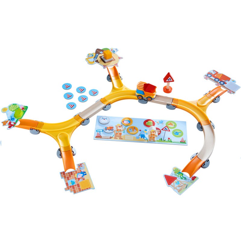 En las obras tenemos que ayudar al Oso Bruno a encontrar las fichas cono correspondientes y llevarlas con el camión volquete hasta las obras.