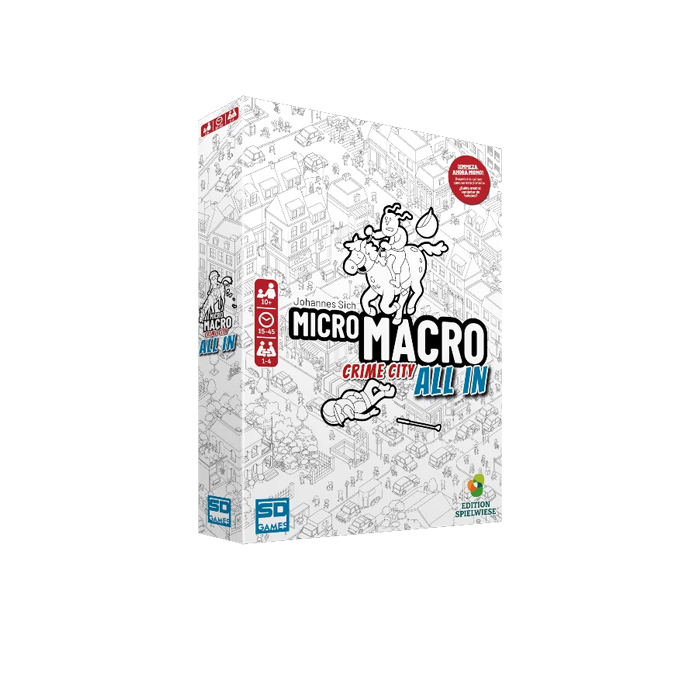 MicroMacro es un juego cooperativo de detectives. Juntos resolveréis intrincados casos criminales, averiguaréis cuáles han sido los motivos, encontraréis pruebas y encarcelaréis a los culpables. Un ojo perspicaz es igual de importante que una deducción ingeniosa. ¡Este es un trabajo para verdaderos detectives!!