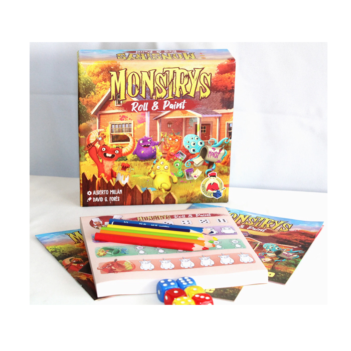 Monstrys Roll and Paint es un juego familiar de agilidad visual y mecánica roll and write. Diseñado por el prolífico autor de juegos de mesa Alberto Millán, con ilustraciones del dibujante David G. Forés.