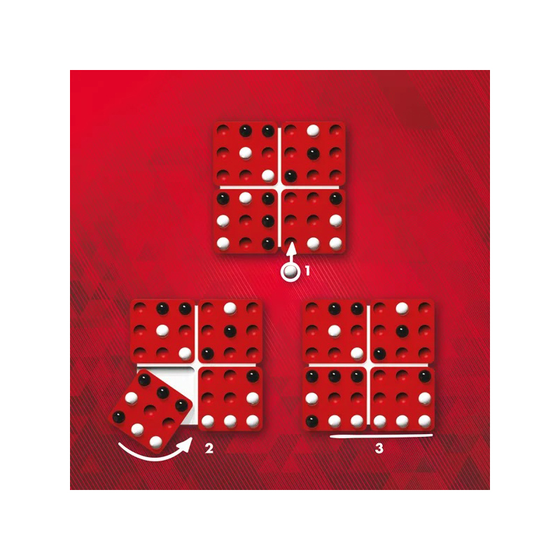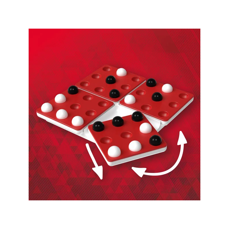 Pero en tu turno, no solo tendrás que colocar la canica en uno de los espacios disponibles: ¡también tendrás que girar uno de los cuatro cuadrados! Todo un reto tanto para jugadoras principiantes como para expertas.