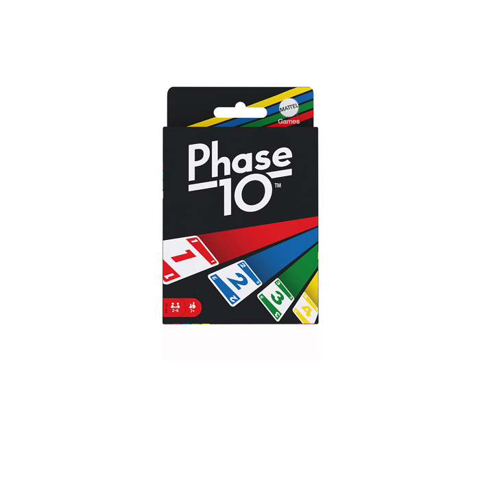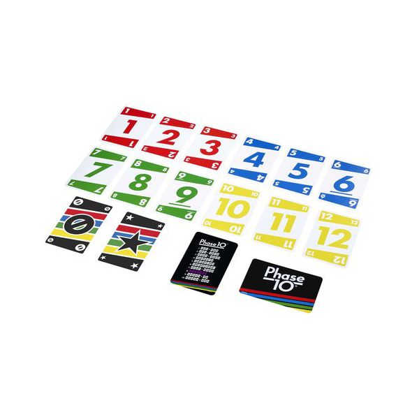 La baraja incluye comodines y cartas Pierde el turno, lo que le da más diversión al juego y puede ayudarte a salir de una situación difícil. El comodín se puede usar para sustituir cualquier número o cualquier color con el fin de completar una fase, ¡mientras que la carta Pierde el turno sirve para que tu rival pierda un turno! Sé el primero en completar las diez fases para ganar la partida.