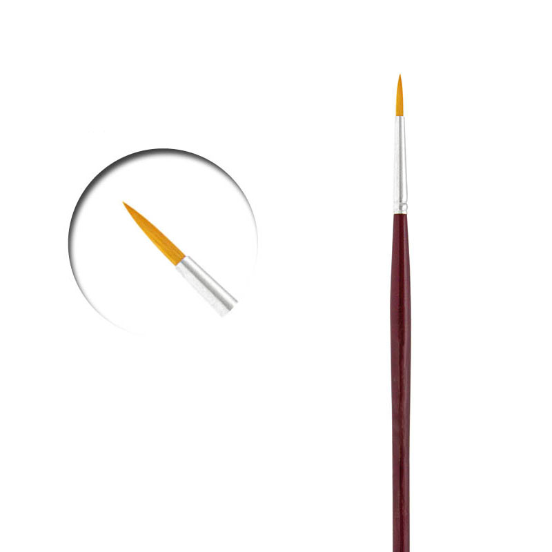 Pincel de pelo sintético de calidad superior para acuarela y miniaturas. Con mango corto de madera barnizado en color plata.
