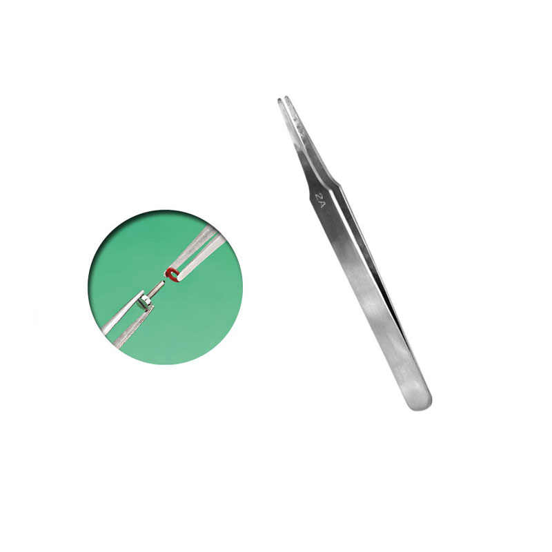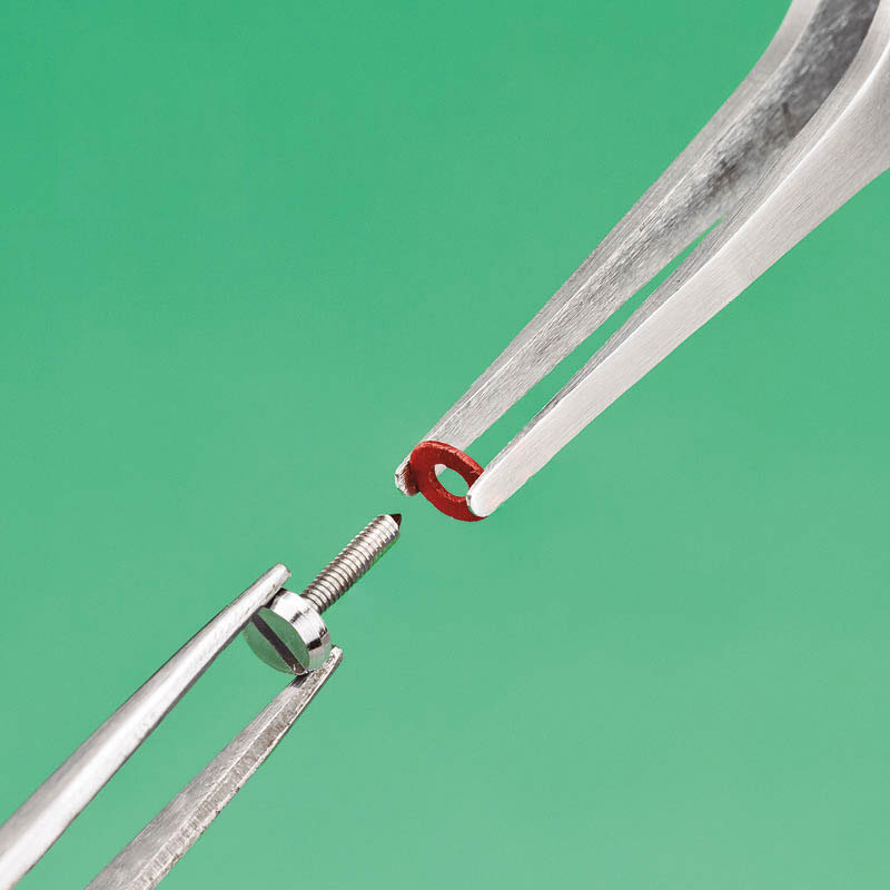 Pinzas de acero inoxidable de punta redondeada ideales para situar en su lugar pequeñas piezas y componentes.