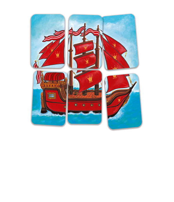 • Carta barco: la primera nos indica el color del que debemos construir el barco. Si nos salen cartas barco que no son de nuestro color, las guardamos: ¡quizás otros jugadores quieran comprarlas!.