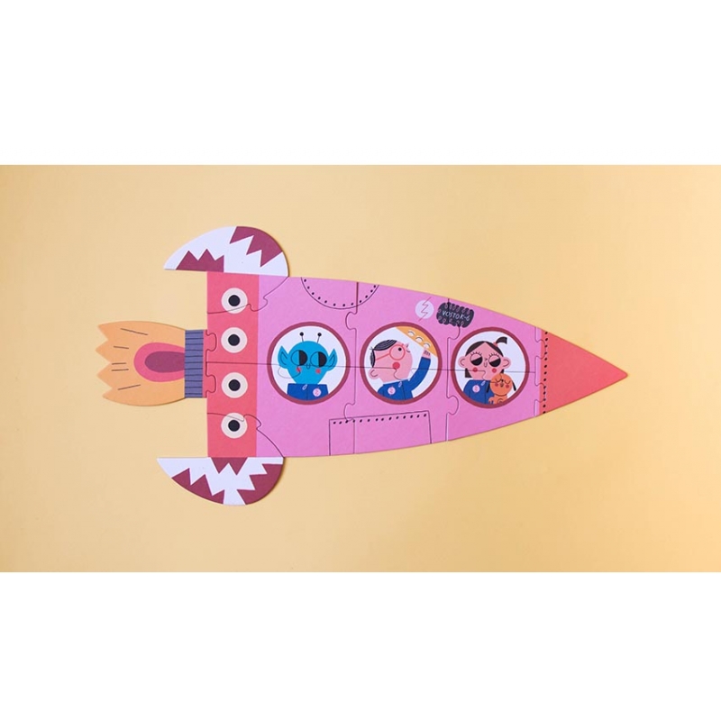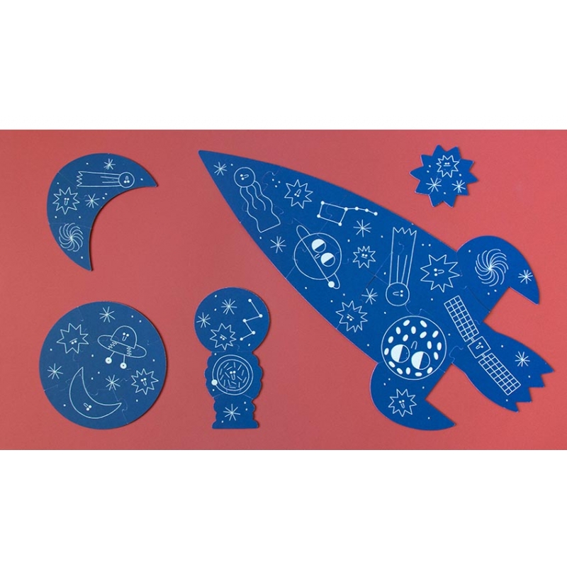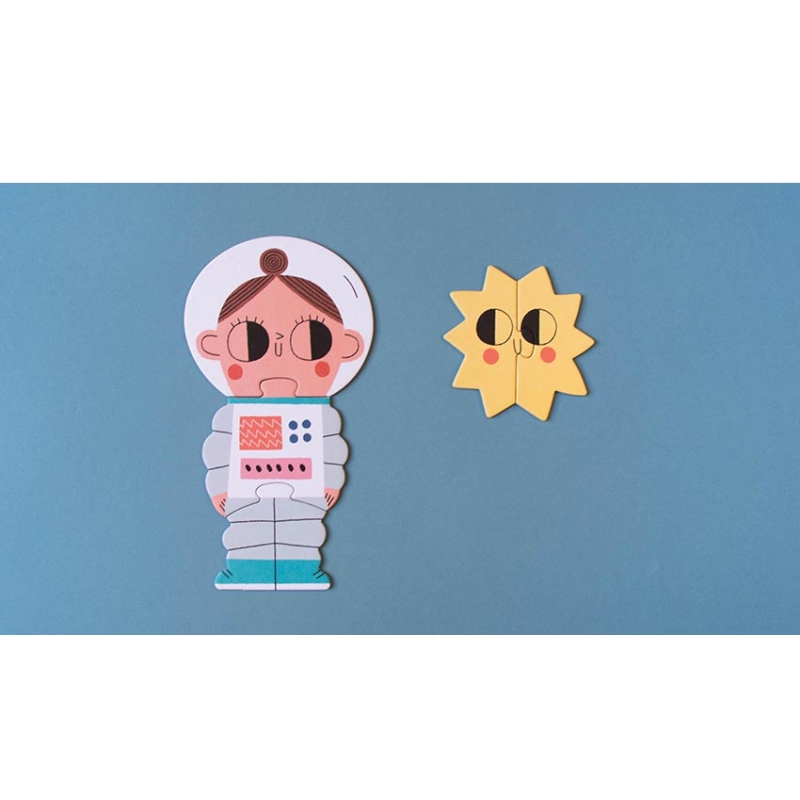 Viaja con Valentina y sus amigos por el espacio con 5 puzzles de Londji reversibles de 2, 3, 4, 5 y 10 piezas.
