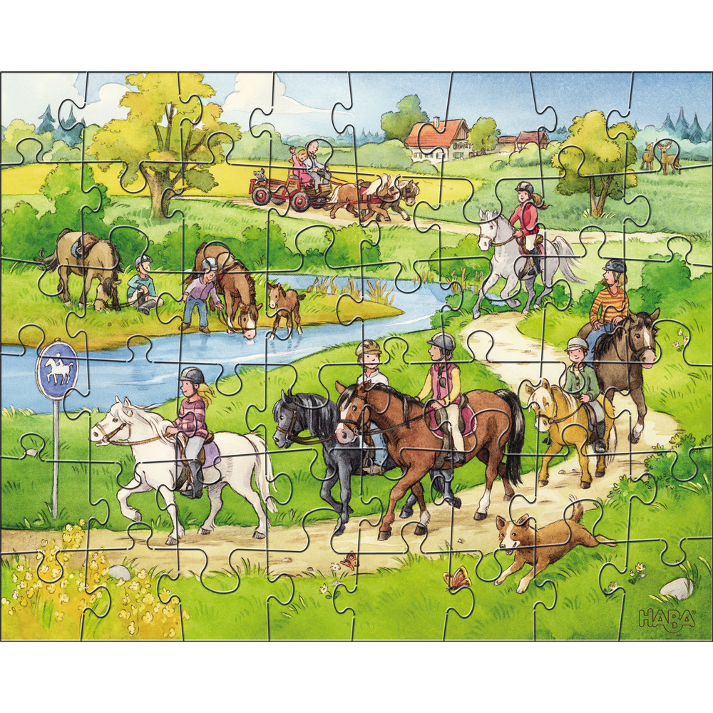 - Vemos un tranquilo paseo a caballo por el campo. Incluso hay un carruaje.
