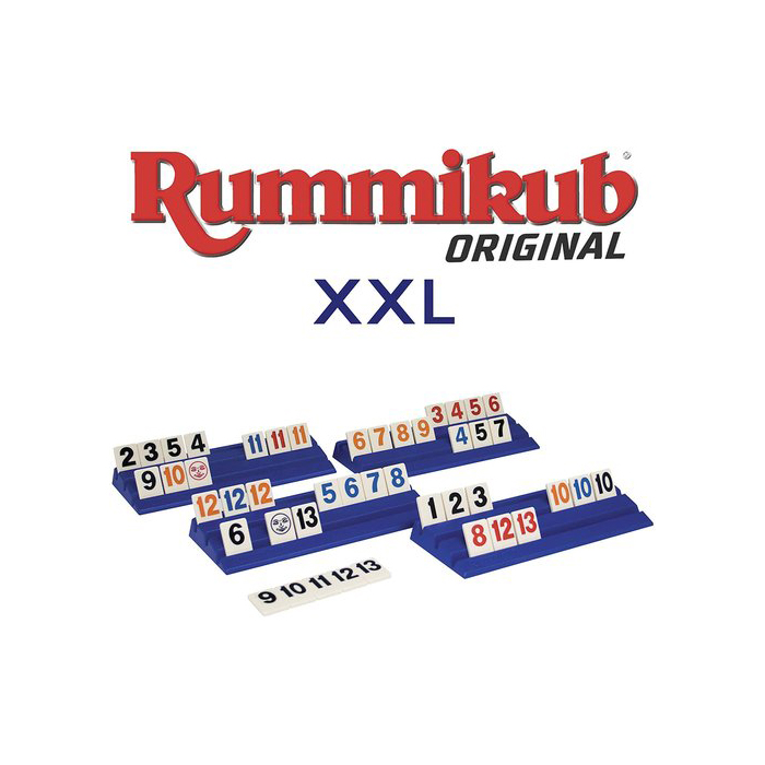 Rummikub Original es el auténtico, el primero y el mejor Rummikub para iniciarte o regalar a tus amigos y hacerlos fans del más divertido juego de números. Y además en esta versión XXL ¡los números son gigantes para que se puedan ver mejor las jugadas! EL tamaño de la ficha es el mismo pero con un número EXTRA grande.