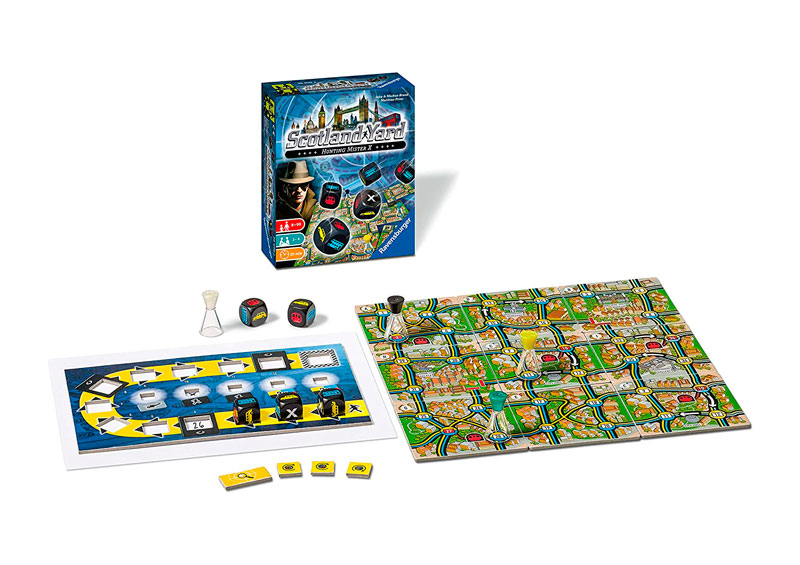 Esta vez los detectives tendrán que atrapar a Mister X con la ayuda de los dados. Si las cosas se ponen muy feas, el helicóptero ayudará a Mister X a salir del aprieto. Los detectives trabajáis en equipo para encontrarlo. ¿Viajará en taxi, metro o autobús?