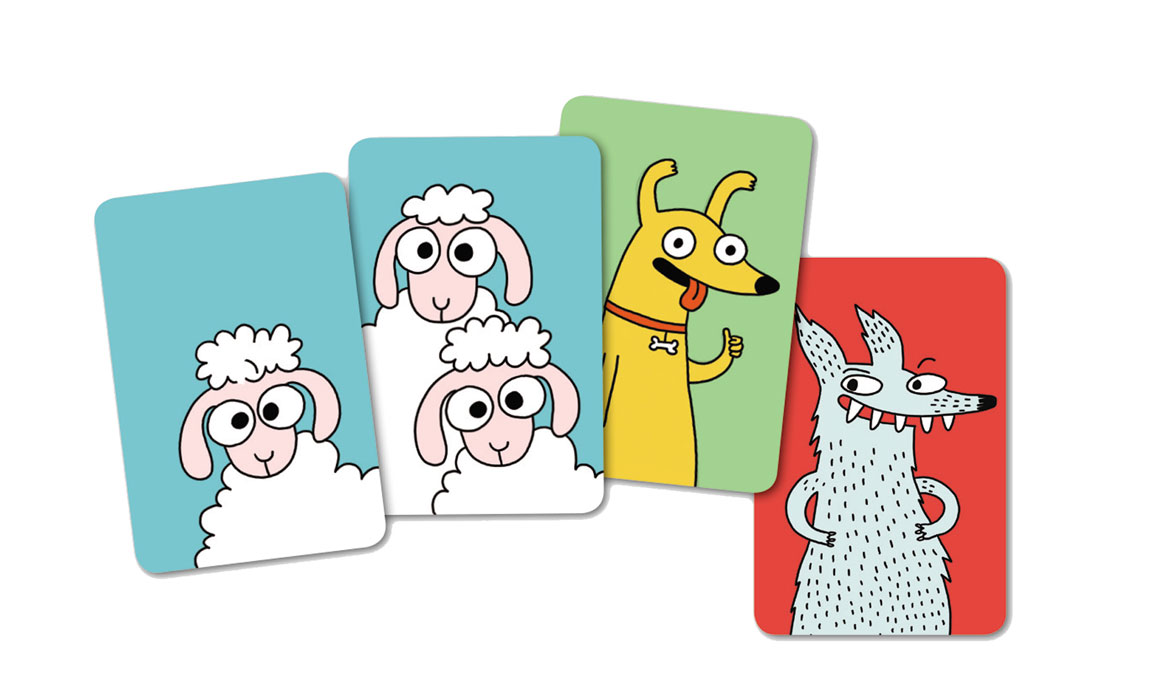 - 32 cartas (6 lobos, 4 perros y 22 ovejas)
