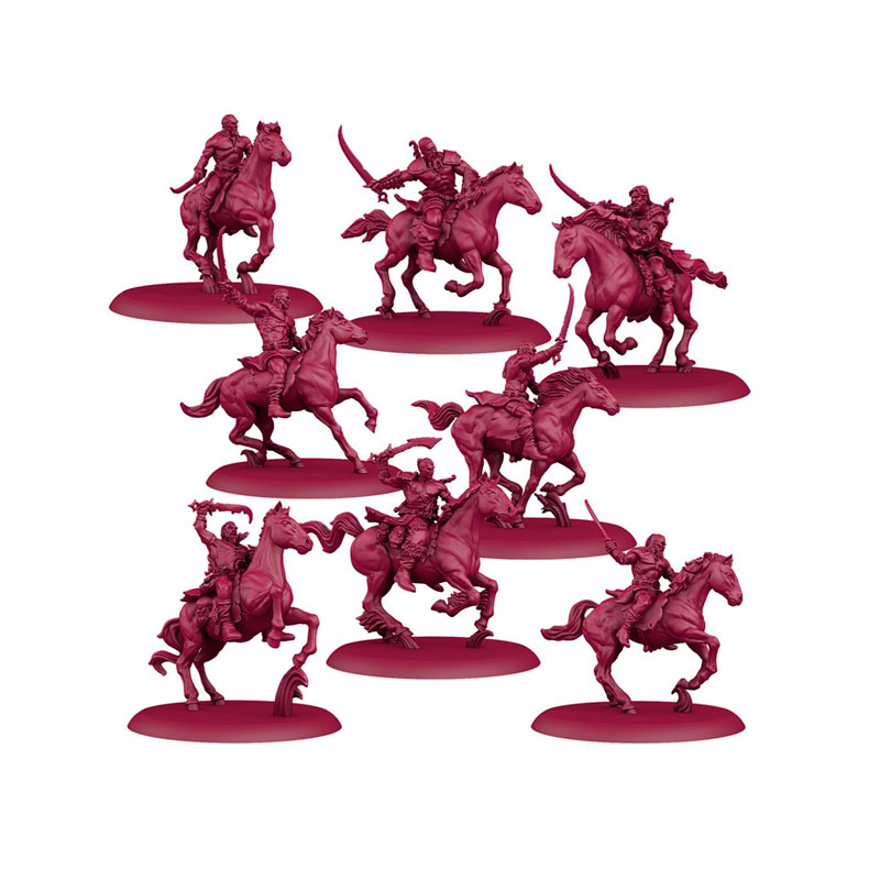 Al otro lado del mar Angosto, Daenerys Targaryen dirige su khalasar como khaleesi del gran mar de hierba. Su influencia y su talento la han convertido en una de las mujeres más poderosas del mundo. Ninguna otra facción cuenta con tanta caballería experta, más experta aún si cabe gracias al inspirador liderazgo de Khal Drogo en el campo de batalla. Además, ser Jorah Mormont, el noble desterrado de Poniente, aporta acero y tácticas occidentales a su causa. Por último, Daenerys también puede confiar en que Illyrio Mopatis inclinará la balanza a su favor mediante una suma de oro o una sutil amenaza. Aunque los Dothraki de Daenerys Targaryen quizá parezcan poco más que salvajes a ojos de los ponientis, subestimarlos será lo último que haga un comandante insensato.