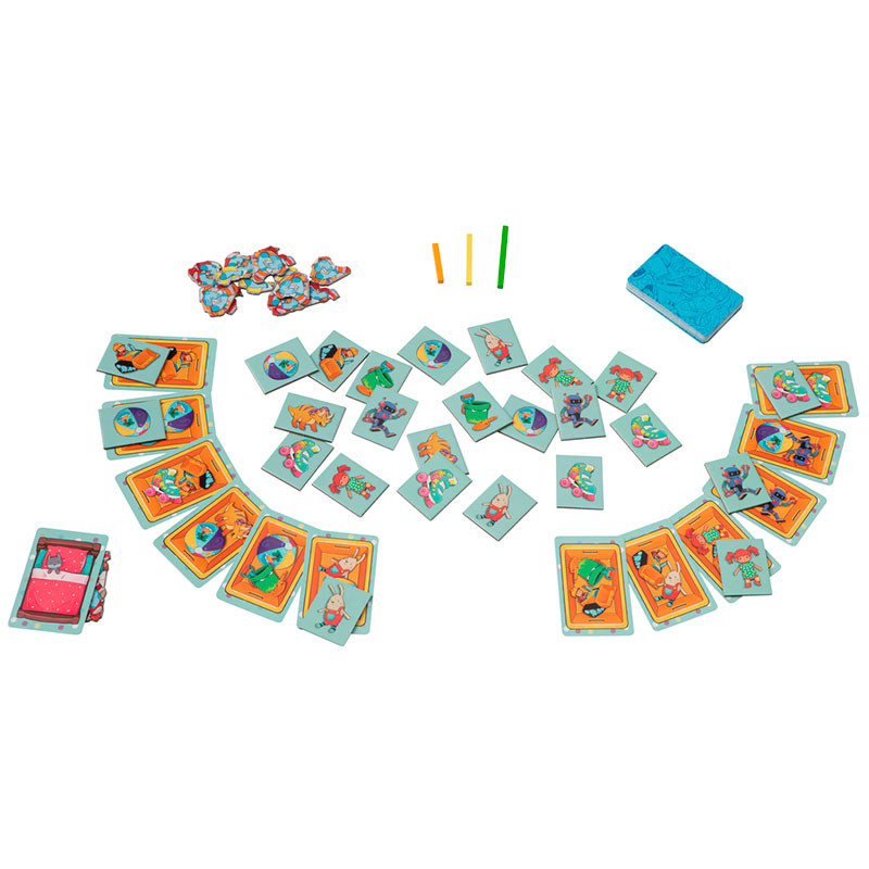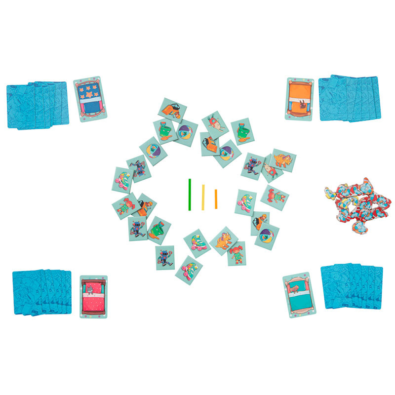 Debemos llenar nuestras cajas de juguetes lo más rápidamente posible con las fichas de juguetes correspondientes. Si no hemos sido lo suficientemente rápidos, debemos coger nuestra ficha de caos y esconderla debajo de la cama.