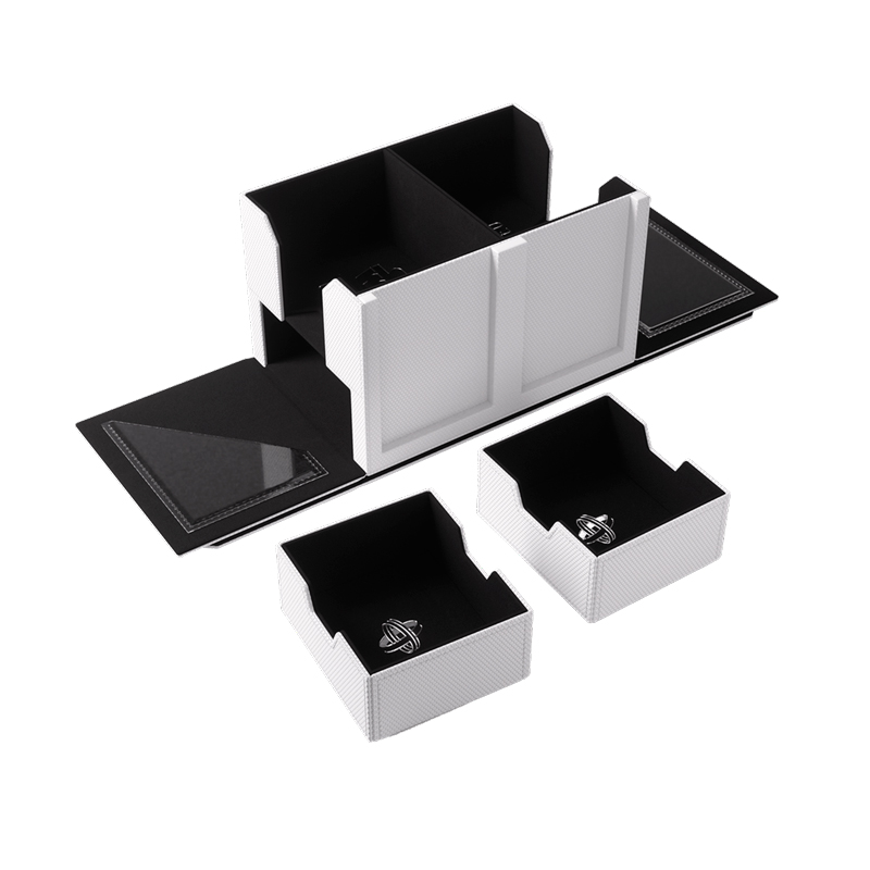 • Las 2 fundas se pueden extraer para usar las cartas de Líder durante las partidas