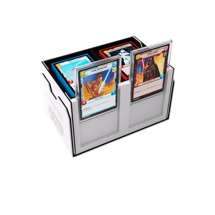 La caja para mazos prémium Double Deck Pod oficial está diseñada para todas las necesidades de los fans de Star Wars: Unlimited. Caben 2 mazos de 60 cartas en doble funda.