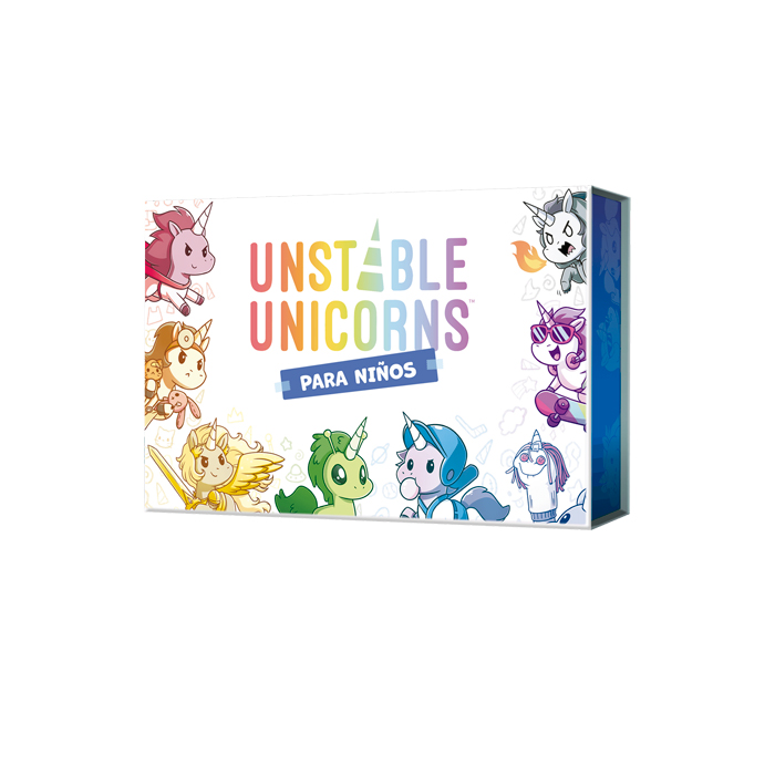 ¡Bienvenidos de vuelta al mundo de Unstable Unicorns! Unstable Unicorns para niños es un juego de cartas para iniciar a los jugadores más jóvenes en el mundo mágico de los unicornios y en los juegos de estrategia… Se trata de un juego para mayores de 6 años, de 2 a 6 jugadores, con personajes totalmente nuevos y unas ilustraciones adorables que encantarán a los más pequeños de la casa.