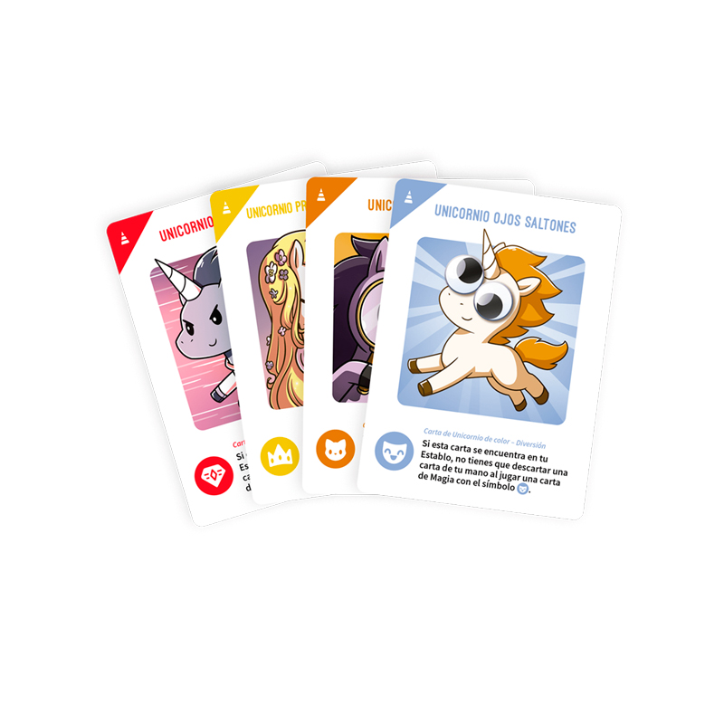 Divididos en ocho categorías diferentes, como Héroe, Animal, Espacio o Deportes, las nuevas cartas incluidas en esta versión infantil de Unstable Unicorns no solo mantienen el nivel de monería del juego original, sino que nos presentan a todo un ejército de nuevos y adorables unicornios: el Unicornio con capa, el Unicornio Princesa guerrera, el Unicornio futbolista o el graciosísimo Unicornio ojos saltones sin duda se convertirán en los nuevos personajes favoritos de toda la familia. ¡Hay un unicornio para todos los gustos!