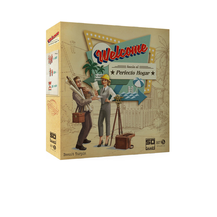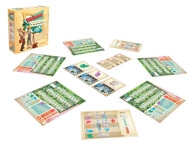 En Welcome los jugadores son arquitectos americanos en la década de los 50, durante pleno Baby Boom compitiendo para ver quién de ellos será el que ejecute mejor los proyectos de la Ciudad creando las parcelas más bonitas en las tres calles que se le han asignado, con sus lujosos parques y piscinas.