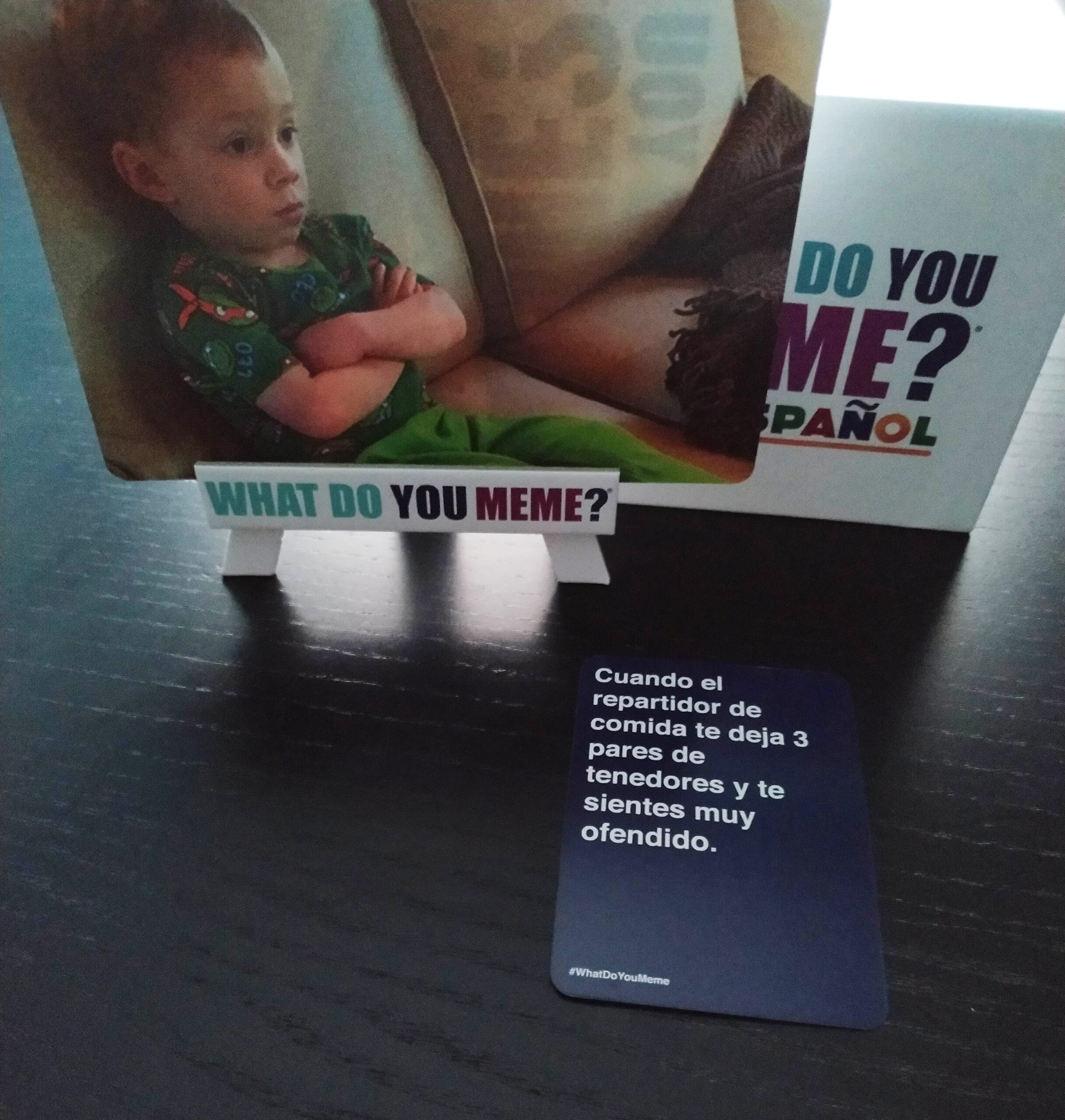 En What do you meme? tienes que crear los memes más divertidos e inesperados intentando asociar alguna de las frases de las que tienes en tus tarjetas con la imagen que se ha colocado en ese momento sobre el caballete.