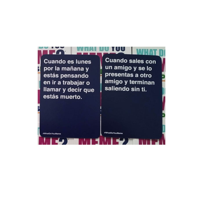 What do you meme? es un juego divertido para adultos amantes de los memes. En él encontramos múltiples imágenes para que dejemos volar nuestra imaginación y asociemos frases a ellas creando de ese modo nuestros propios memes.