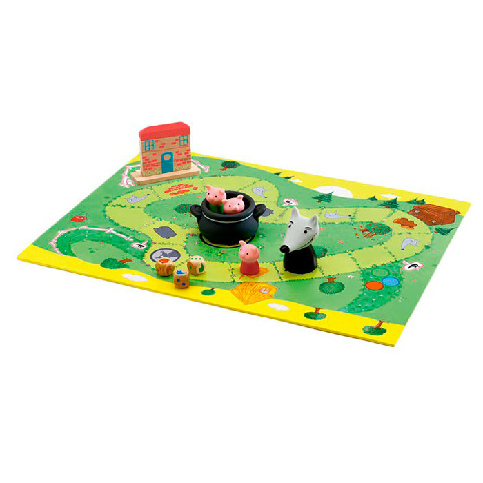 Woolfy es un juego de cooperación basado en el cuento de los tres cerditos donde debemos construir la casa para proteger a los 3 cerditos antes de que el lobo les atrape y los ponga en la olla!